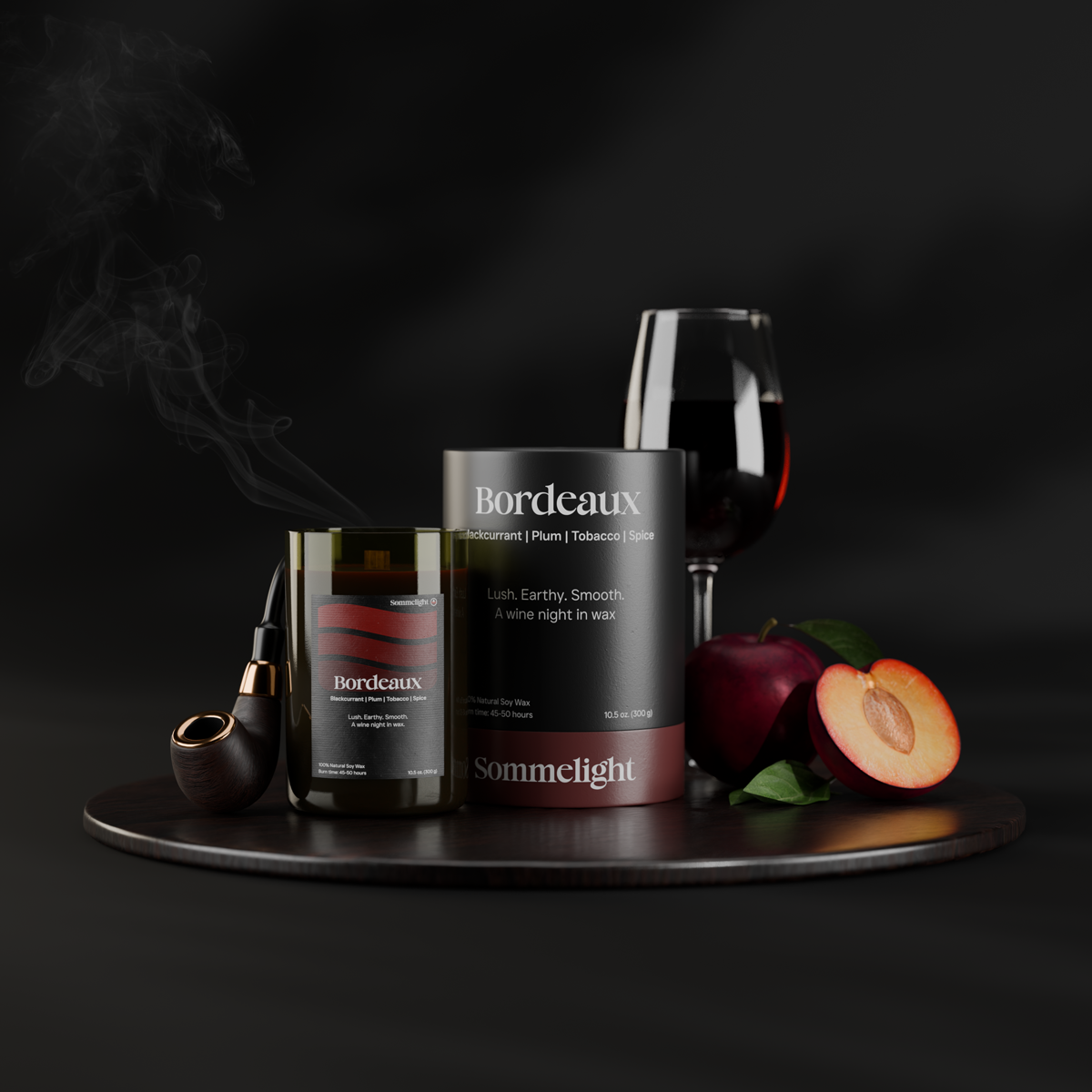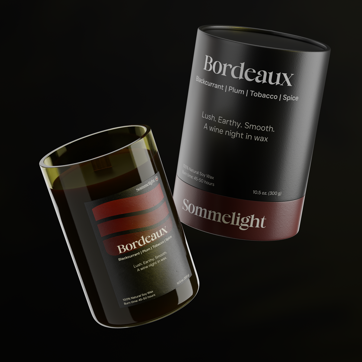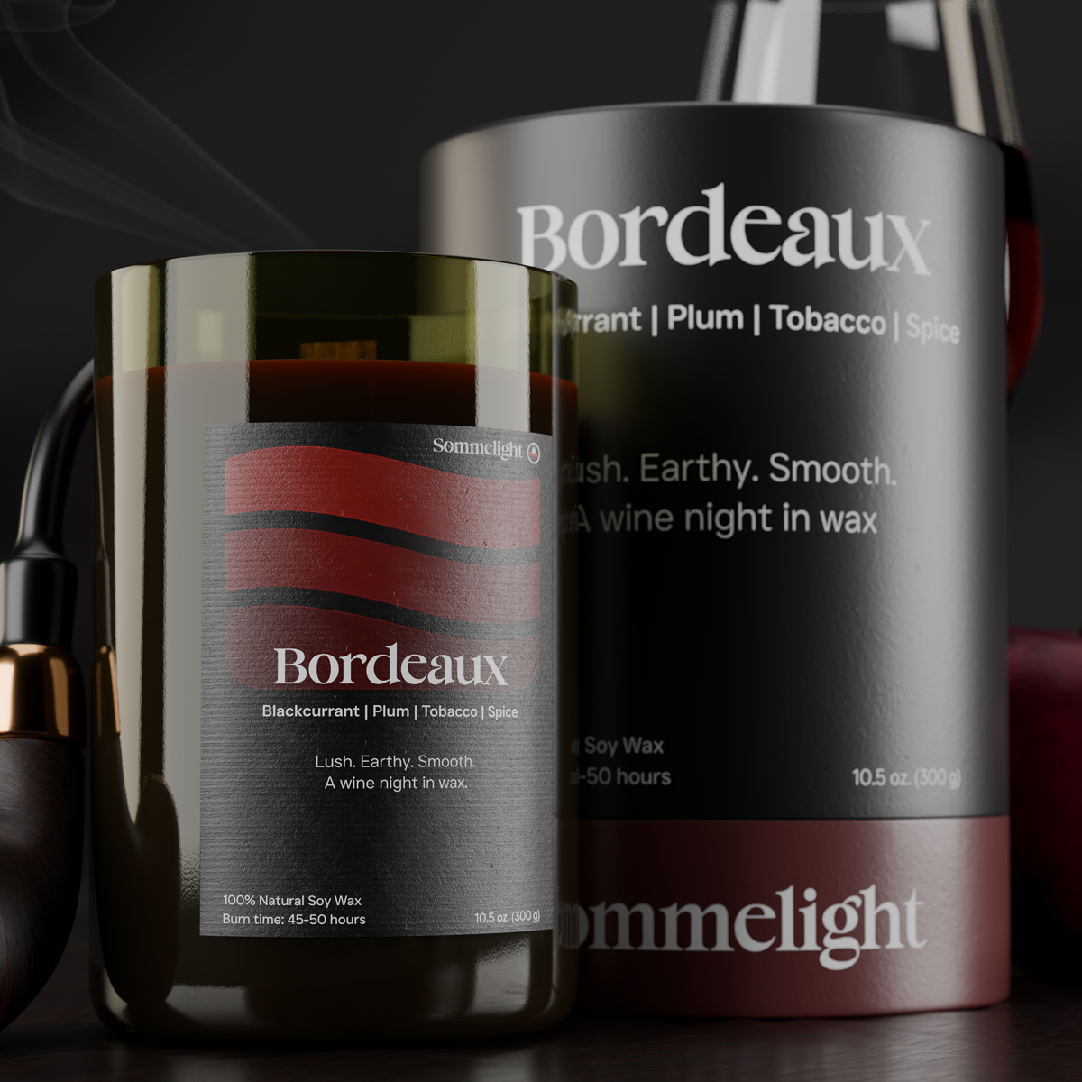 Small-batch crafted and eco-conscious, the Bordeaux Candle embodies Sommelight’s signature style:
